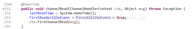 请注意254行代码其实表示该方法只是进行了透传,不做任何的业务逻辑处理,让channelPipel中的下一个Handler处理channelRead方法,但是记录了一下这里的调用时间。