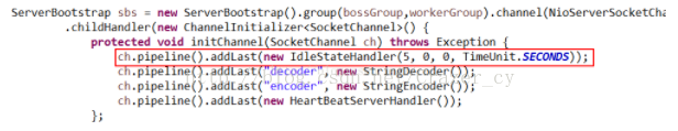 这个类主要也是一个ChannelHandler,也需要被载入到ChannelPipeline中,加入我们在服务端的ChannelInitializer中加入如下的代码: