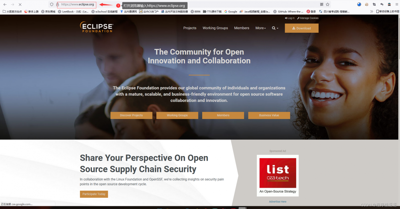 如果是学习Java编程人员,那么我们必须知道oracle的官网。如果是初学者,那我们可以在百度上搜https://www.eclipse.org,然后进入官网。
