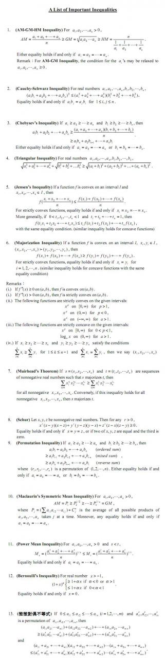 19、托勒密定理:设四边形ABCD内接于圆,则有AB×CD+AD×BC=AC×BD