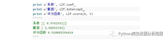 运行结果如下所示,包括系数、残差平方和、方差分数。