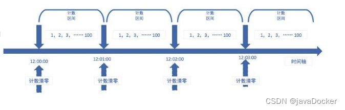 计数器算法指在一段时间内,进行计数,与阀值进行比较,如果超过了阀值则进行限流操作,到了时间临界点,将计数器清零进行重新基数,即单位时间段内可访问请求的次数进行控制。计数器算法是一种比直观简单的限流算法,常用于应用服务对外提供的接口层面。