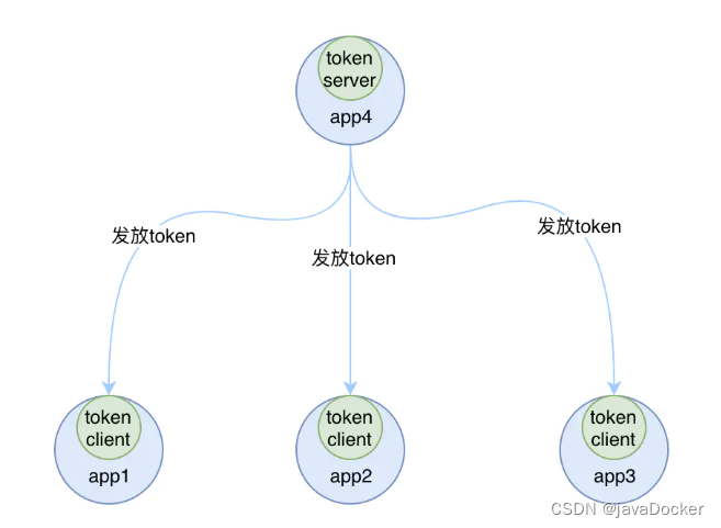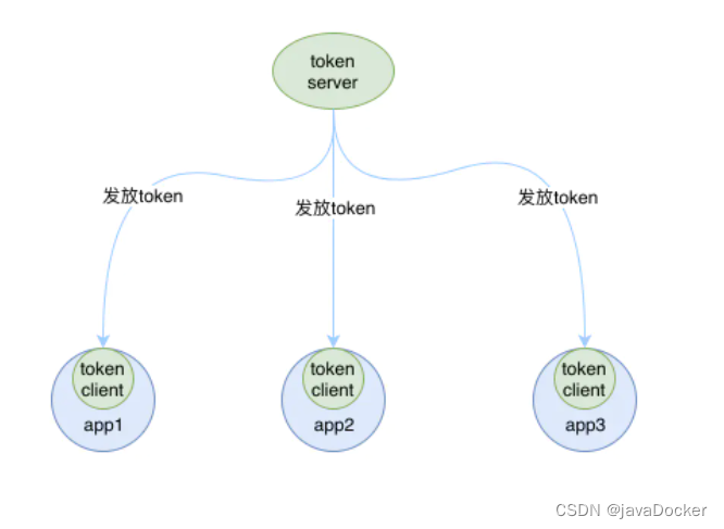 - 一种是独立部署,就是单独启动一个 token server 服务来处理 token client 的请求,如下图所示: