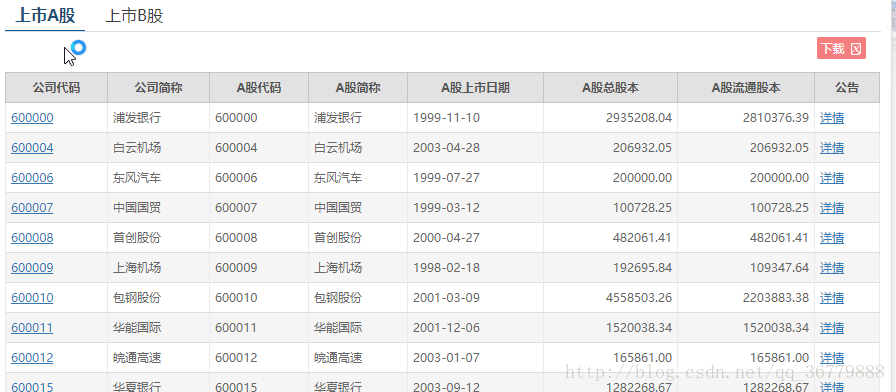 url='http://query.sse.com.cn/security/stock/getStockListData2.do?&jsonCallBack=jsonpCallback99887&isPagination=true&stockCode=&csrcCode=&areaName=&stockType=1&pageHelp.cacheSize=1&pageHelp.beginPage=1&pageHelp.pageSize=25&pageHelp.pageNo=1&_=1517320503161'