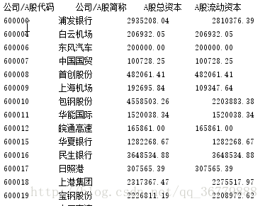 有用的就是公司代码,公司简称,A股代码,A股简称以及A股总资本和A股流通资本这几项。
