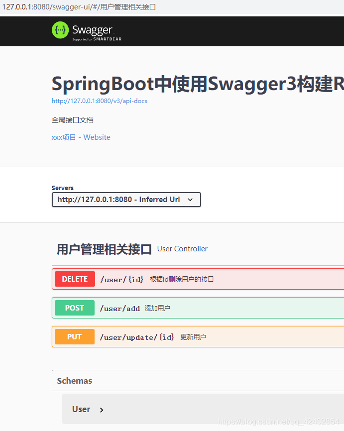 访问地址:http://项目实际地址/swagger-ui/index.html 或者http:/项目实际地址/swagger-ui/