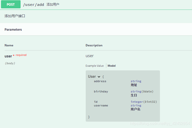 @ApiImplicitParam(name = "username", value = "用户名", dataType = "String", defaultValue = "lisi", required = true)