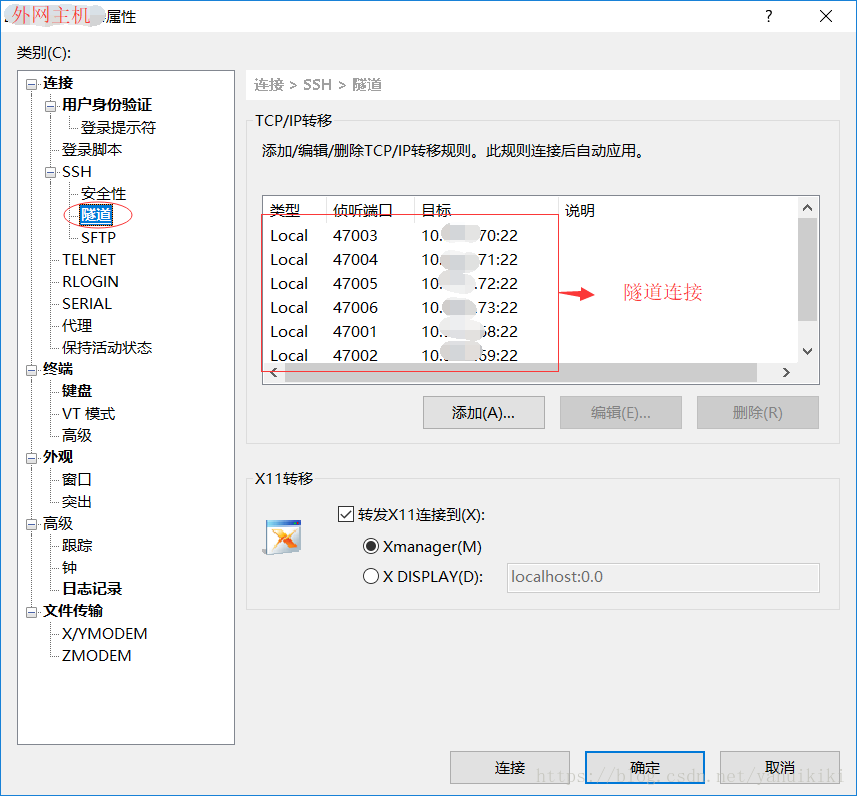 点击添加,47003是被访问外网主机开启一个监听,处理本地主机要访问的一台内网主机的隧道