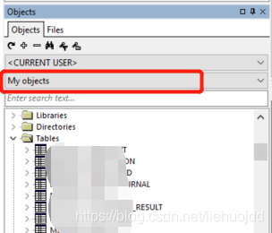 在Objects窗口选择My Objects,展开Tables路径即可看到当前的表。