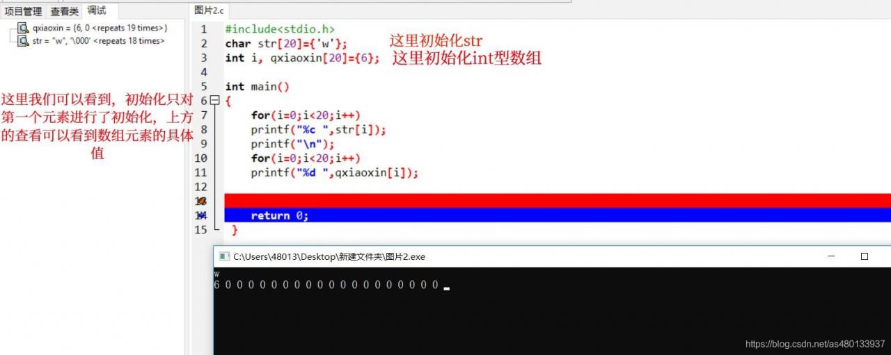 请注意,在我们进行数组初始化的时候如果定义的数组过长,而我们只初始化了一部分数据,对于未初始化的数据如果是数值型,则会自动赋值为0,对于字符型,会自动赋初值为NULL,即‘\0’ 即不足的元素补以默认值