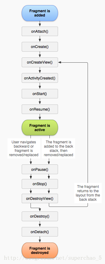 首先是Fragment的函数调用过程,理解这个过程很重要,一些方法必须要在相应的过程执行之后才能被调用。