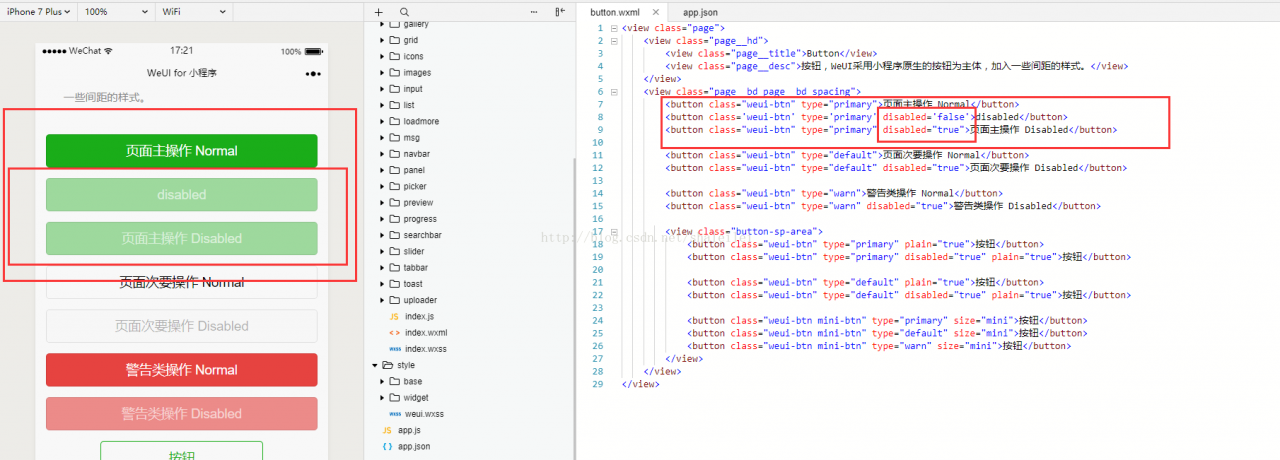 今天没事敲小程序演示demo的时候,发现button的disabled的属性为false和true的时候效果是一样的,也就是只要你是写了disabled,就是不可点击的