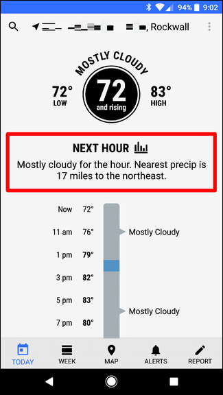 Play商店提供了免费版本的Dark Sky,但也有订阅模式(每年3美元),其中添加了一张小图,其中包含最新的降雨预报。 当我最初嘲笑天气应用程序的订阅模式时,实际上我认为在使用Dark Sky Premium一段时间后值得这样做。 另外,只有三美元。