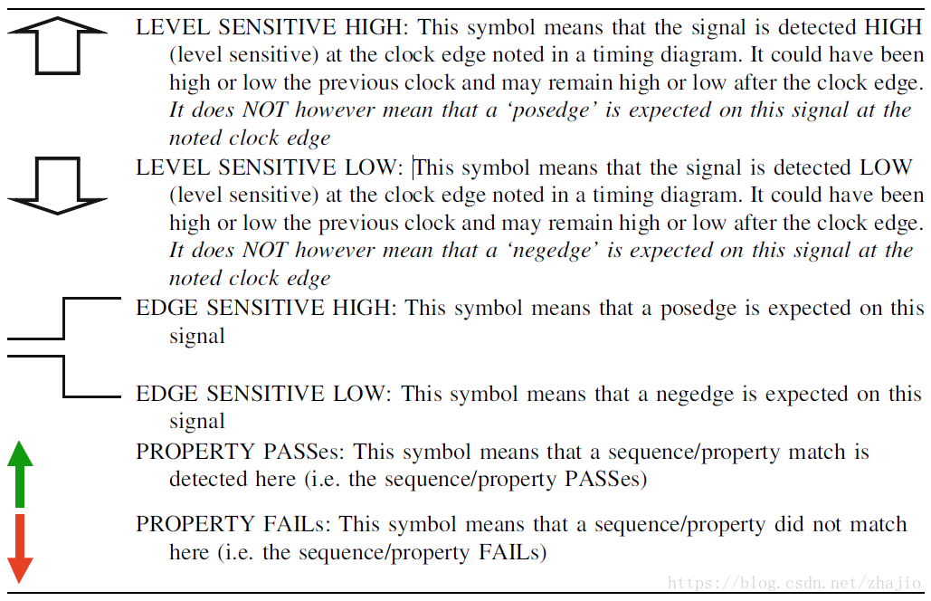 对于边缘敏感的断言,我选择了常规的时序图来区分它们与电平敏感的符号。