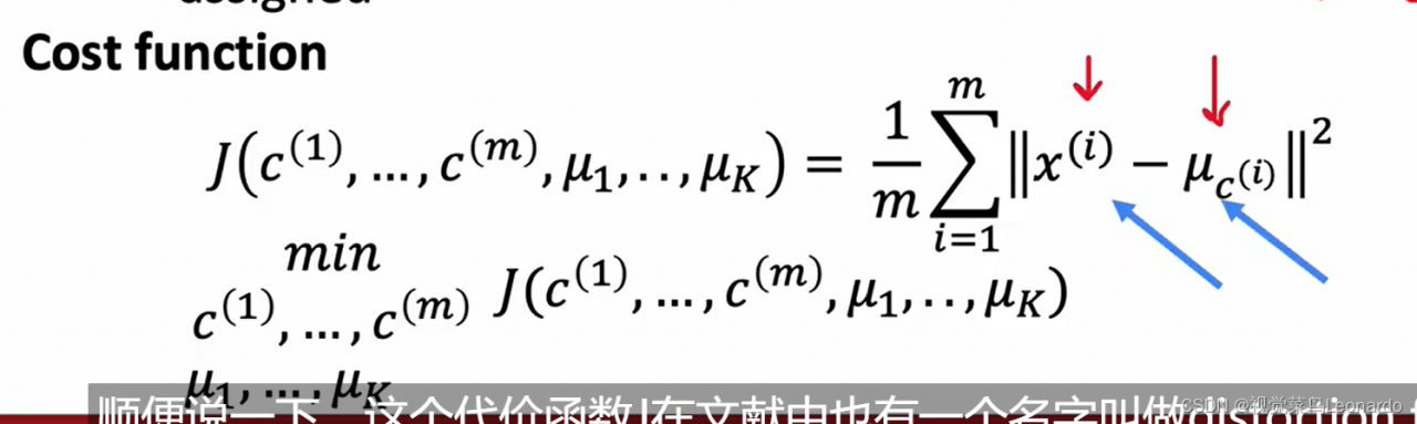 C(i)代表簇的索引,nk表示质心,x为训练样本