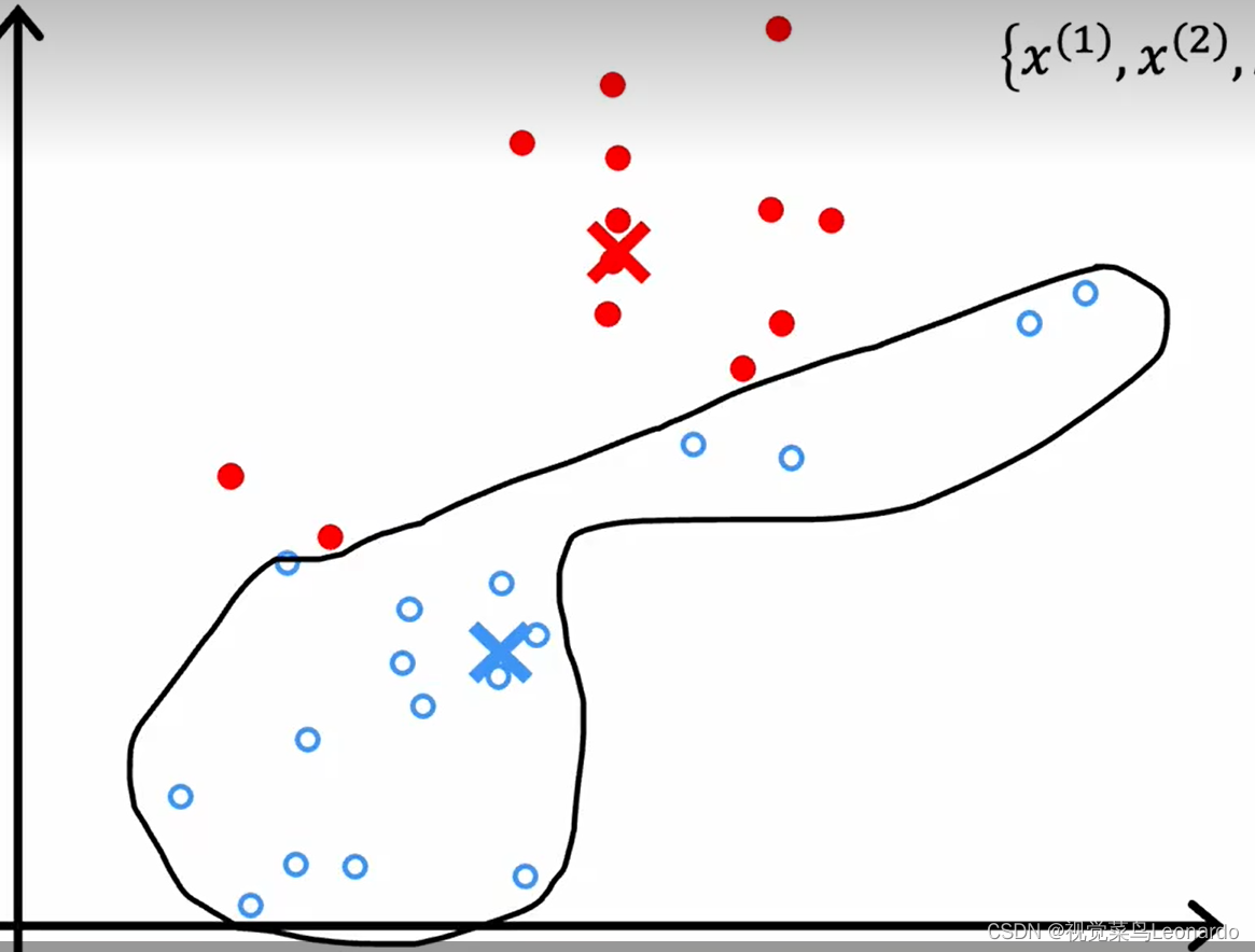 聚类学习会将数据集分组成簇(clusters),一组彼此相似的点