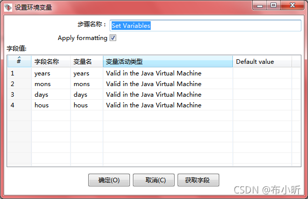 我设置了四个变量:分别是“年”、“月”、“日”、“时”,全部设置为全局变量。