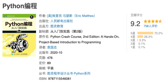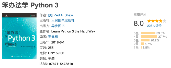 久负盛名的 Python 入门经典,中文版累计销量 20+ 万册,这一版是针对 Python3 的全新升级。