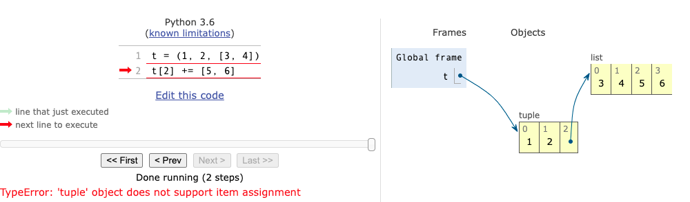 如果你不知道代码在内存中是如何运行的,不妨把它拷贝到 Tutor 里可视化执行一遍,加深理解。