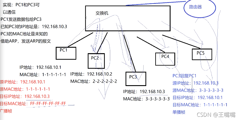 ②数据链路层:关注的硬件是交换机(二层交换机和三层交换机) 传输的数据是数据帧