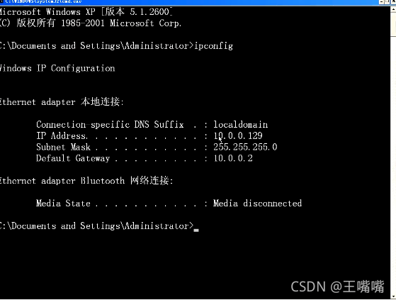 我们得到IP地址是10.0.0.129,网关是10.0.0.2,这个时候利用kali进行ARP攻击
