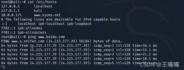 ping www.baidu.com得到回复,得到IP地址为14.215.177.39(这个时候找的是公网上的DNS服务器)
