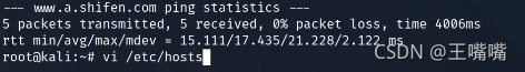 eth0是kali网卡的名字 -t指的是目标 -i指的是网卡 -t后接目标的IP地址和网关 arpspoof相当于arp攻击的一种工具。网卡名字怎么查呢?——ipconfig/all