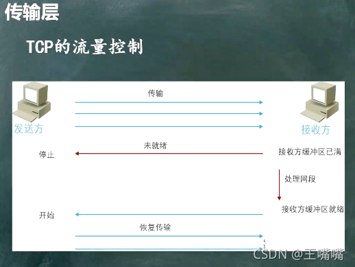 发送方先发了三个数据,但接收方缓冲区已满,就给发送方发一个停止,让发送方停止传输。然后接收方先处理自己的网段,然后再告诉发送方可以继续传输数据。