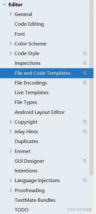 3.找到Editor下的File and Code Templates并打开