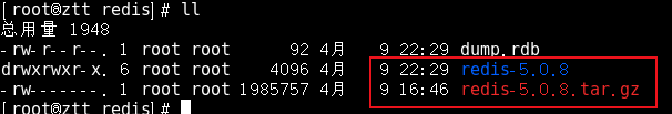 [root@ztt redis]# tar -xzf redis-5.0.8.tar.gz