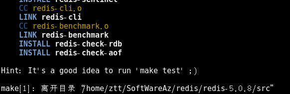 make[1]: 离开目录“/home/ztt/SoftWareAz/redis/redis-5.0.8/src”