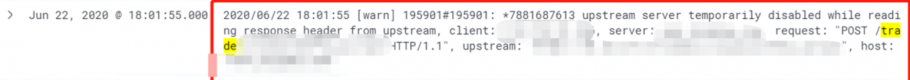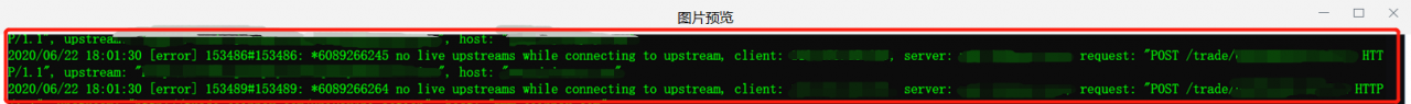 总的来说,就是各种对外接口频繁出现偶发性的商户请求不通,同时集中在同一项目部署的应用,Nginx 502 告警,并报错日志 no live upstreams while connecting to upstream。