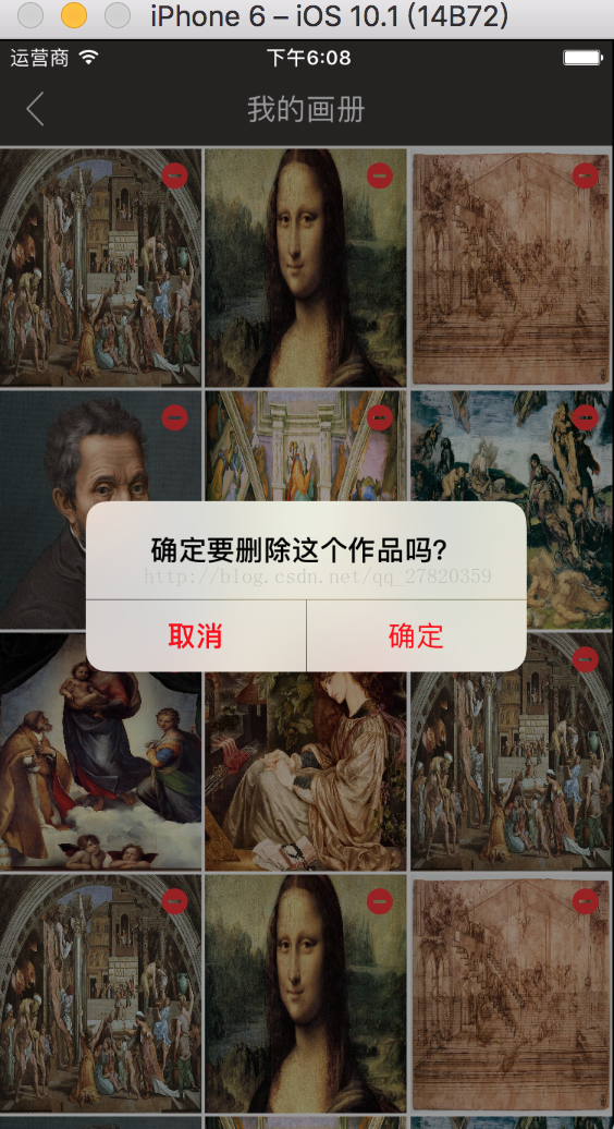 UIAlertController*alert = [UIAlertControlleralertControllerWithTitle:@"确定要删除这个作品吗?"message:nilpreferredStyle:UIAlertControllerStyleAlert];