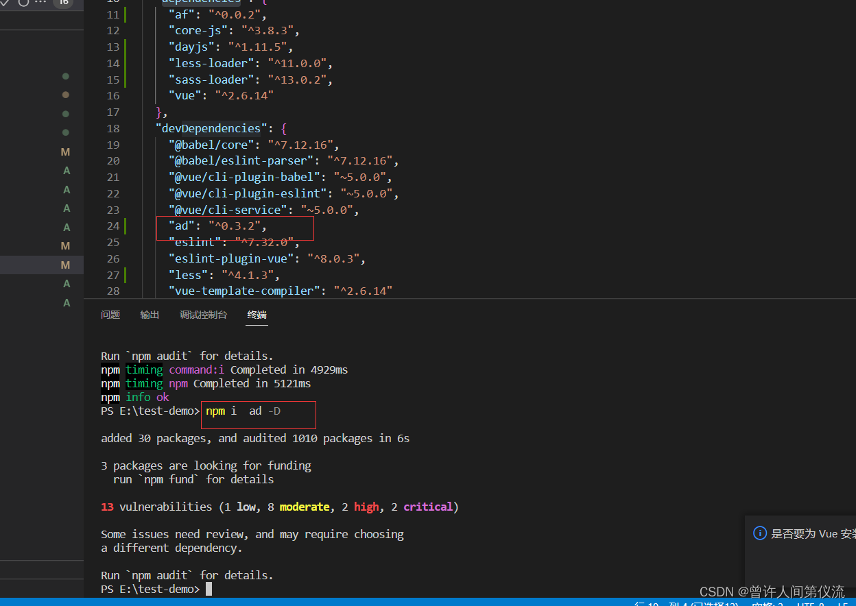 –save-dev ,缩写为 -D ,表示将安装的包写入package.json里面的devDependencies。