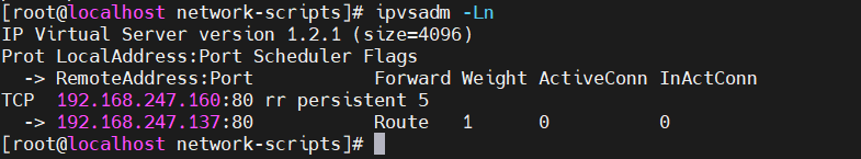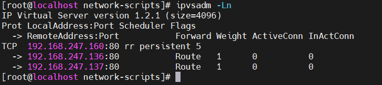 -> RemoteAddress:Port Forward Weight ActiveConn InActConn
