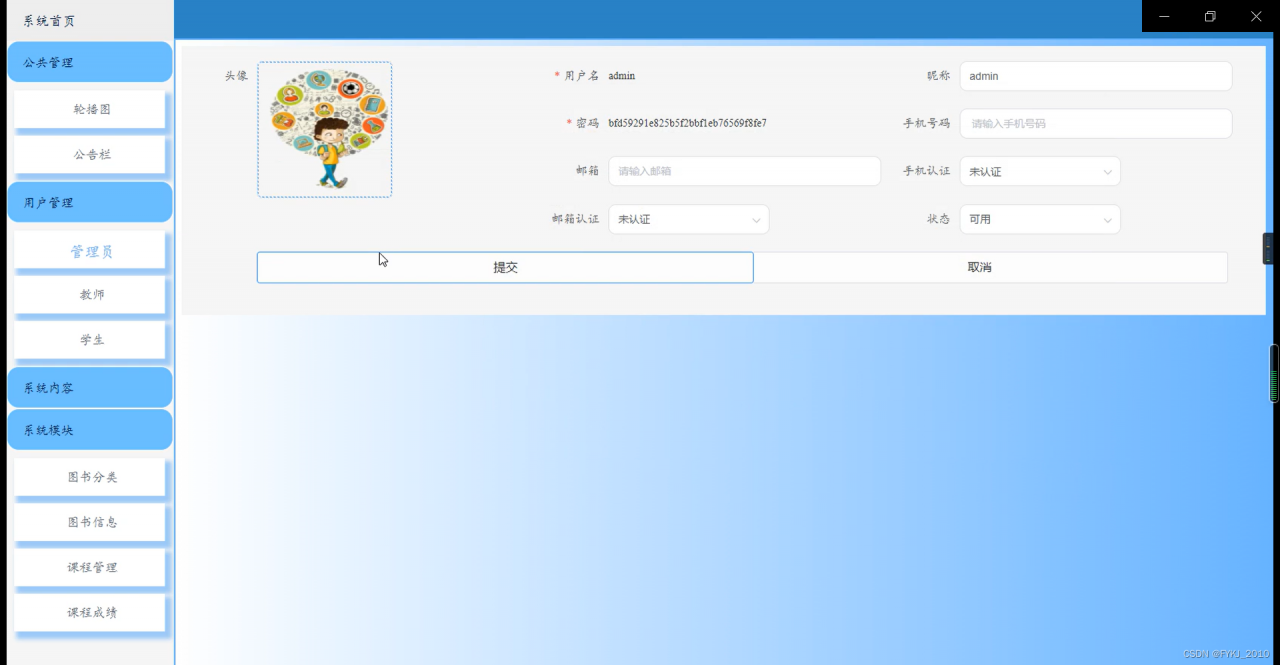 管理员也可以对自己的基本信息的维护。