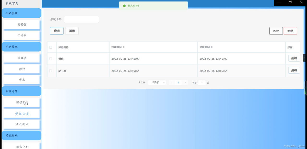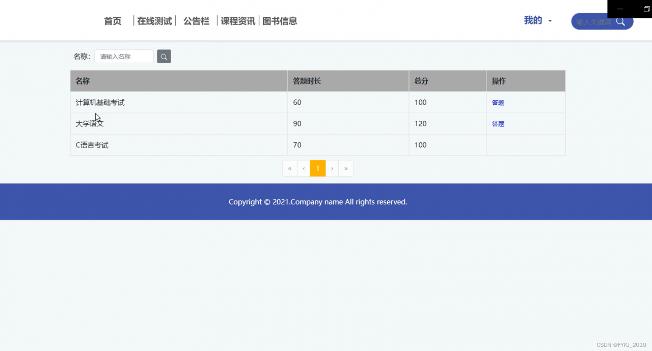 管理员管理、课程信息,方便后面为每门科目开设考试。