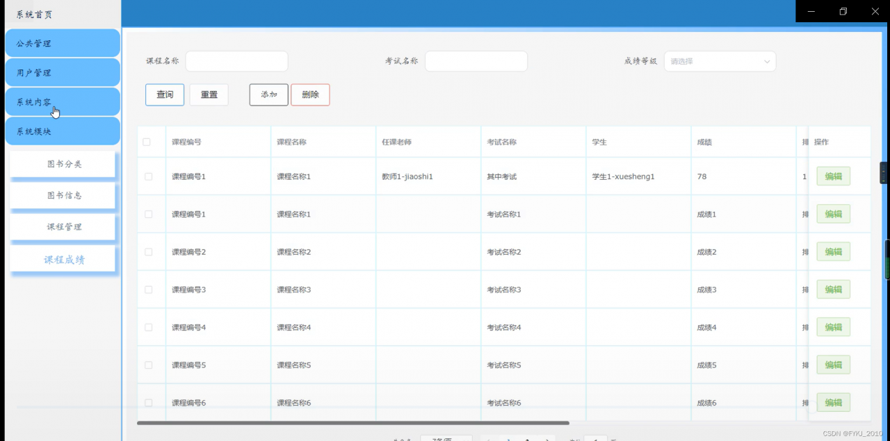 图5-9课程成绩管理界面图