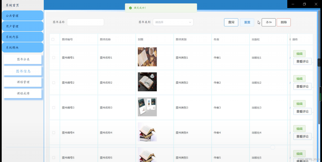 图5-9图书信息管理界面图