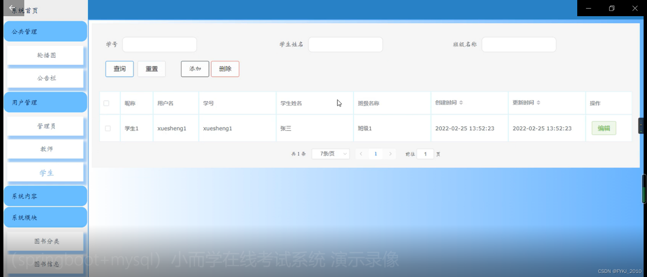 系统管理员可以对用户信息(包括考生信息)进行增,删,改查操作。