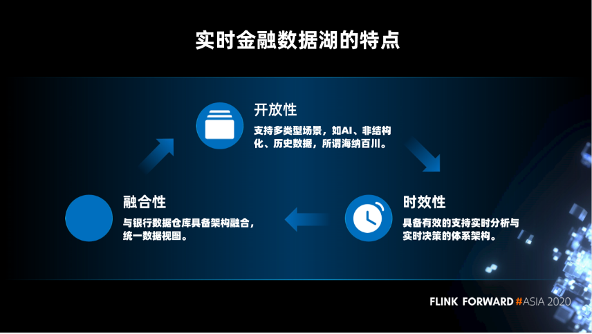 通过以上介绍的三个观点引出今天介绍的主题,实时金融数据湖。 主要有三个特点: