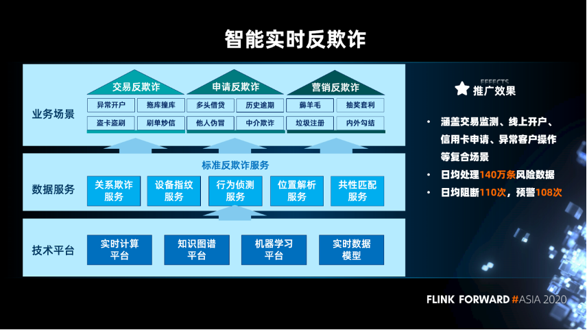 当前已经实现日均实时处理 140 万条风险数据,日均实时阻断 110 次,日均实时预警 108 次。
