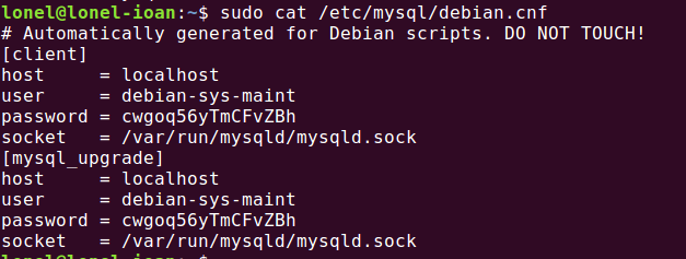 1、输入命令 cat /etc/mysql/debian.cnf