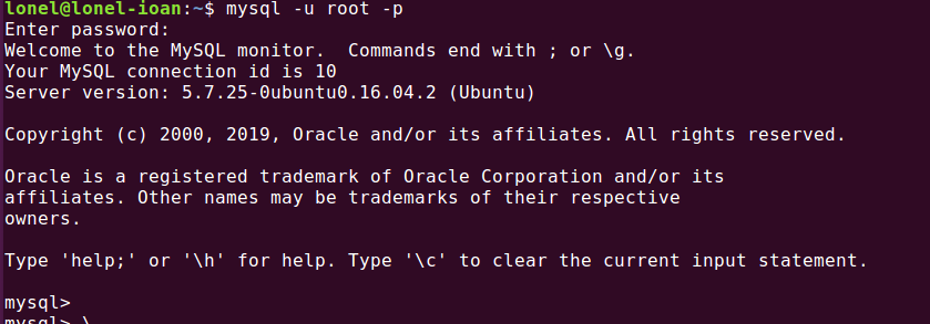 mysql -u root -p
