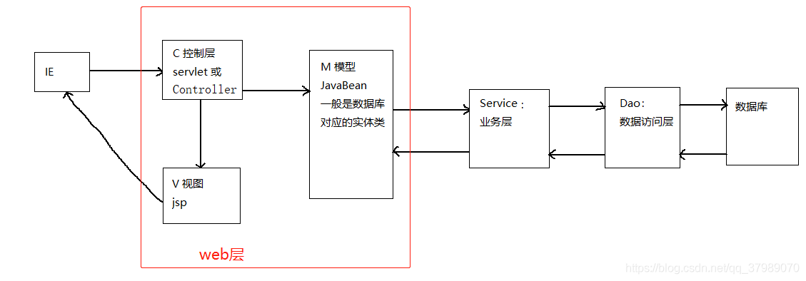 然后view就是jsp代码,model通常就是一个javaBean, 在service和dao层来回携带数据