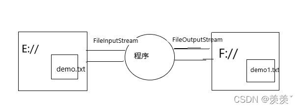 在谈这两个类之前,我们先来聊聊,什么是输入和输出呢 , 简单理解的话,我们编写的程序就相当于一个中转站, 首先将一个文件的内容输入进来, 然后再通过中转站将内容输出到另一个文件上,那么在这个基础之上呢 , 我们将要介绍的inputStream与OutputStream就相当于两段传输的管道, 起到传输字节的作用,如下图