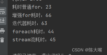 System.out.println("stream流耗时:" + (System.currentTimeMillis() - startTime5));一千万数据在耗时情况如下: