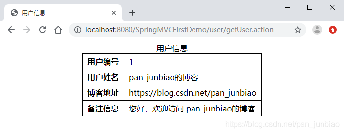 }(3)View视图:创建名称为userInfo.jsp的JSP页面,用于显示用户信息。