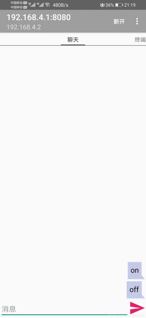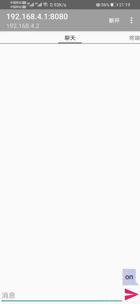 4、打开TCP,输入地址和端口,连接上热点,然后就可以进行各种命令了