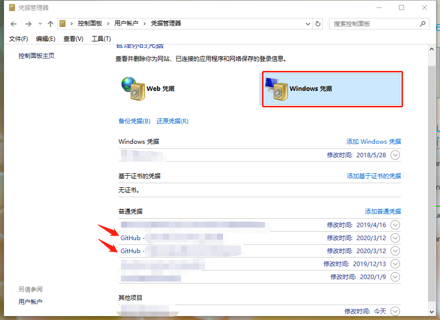 4. 在〈windows凭据〉下面找到你的项目git 地址,点击